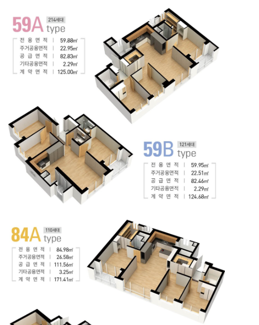 그런데 부동산 관련 컨텐츠, 블로그, 홍보물에서는 제곱미터(m2)대신 타입(Type)이라는 말을 사용하기도 합니다. 이는 아파트의 평면은 어디나 비슷하지만 면적에서는 조금씩 차이가 있기 때문에 타입(Type)이라는 말을 편의상 사용하고 있는 것입니다.