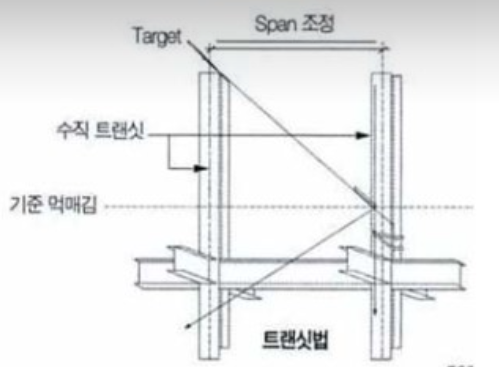 가) 중간 단계 측정: 기둥 한 개 세울 때마다 또는 주요 프레임 설치 후 수직도 측정