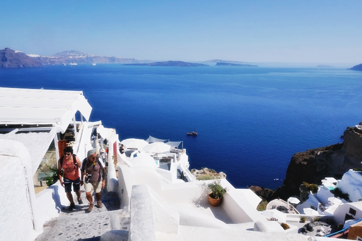 반면 이아마을은 세계에서 가장 아름다운 석양을 볼 수 있는 곳으로도 꼽힌다. 그래서 대낮부터 자리를 잡고 석양이 오기를 기다리는 사람이 많다.