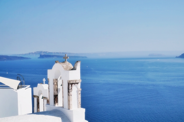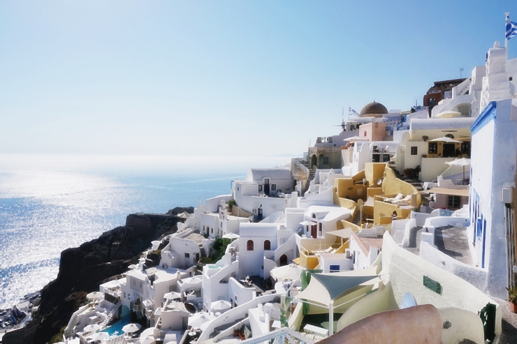 화산폭발로 생겨난 에게해의 아름다운 섬 산토리니. 키클라데스 제도의 남쪽끝에 있는 섬으로 그리스 본토로부터는 200km 떨어져 있다. 섬의 면적은 76km2, 여의도의 약 20배에 달하는 크기이나 제주도 면적 1847km2에는 한참 못미친다.