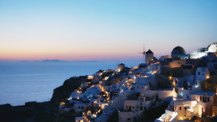 해가 넘어거고 점점 어두워지기 시작하면 이아마을에 불빛이 들어오기 시작한다. 낮에도 저녁에도 밤에도 아름다운 이아마을.