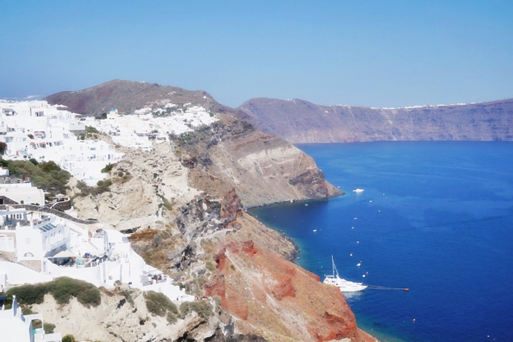 산토리니는 원래 하나의 큰 섬이었으나, 화산폭발이 일어나면서 칼데라 지형이 되었다고 한다. 백두산 천지의 모습이 바다에 떠있다고 생각하면 이해가 빠를 것이다. 섬의 중앙이 화산폭발로 움푹 페였고, 여기를 바닷물이 채우면서 바다의 분지같은 모습이다.
