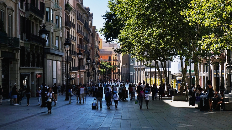 카탈루냐 광장을 중심으로 북쪽에는 쇼핑가인 그라시아 거리가 있고, 남쪽으로는 람블라스 보행자 전용 도로가 해안까지 이어진다.